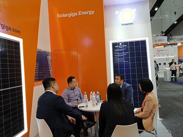 本次展会,锦州阳光能源有限公司携带60型-335W等高效组件参加展会,展台上的展品吸引了许多国内外和当地光伏从业者的驻足关注。