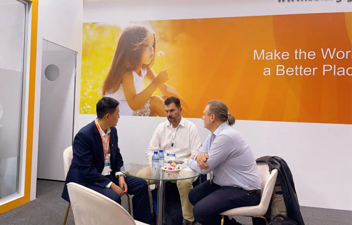 本届德国展,阳光能源展出了我司的“明星产品”——GIGA系列组件,其卓越的性能和高效的转换效率,深受客户好评。现场,阳光能源工作人员还与来自世界各地的业内人士展开了深度交流与业务洽谈。
