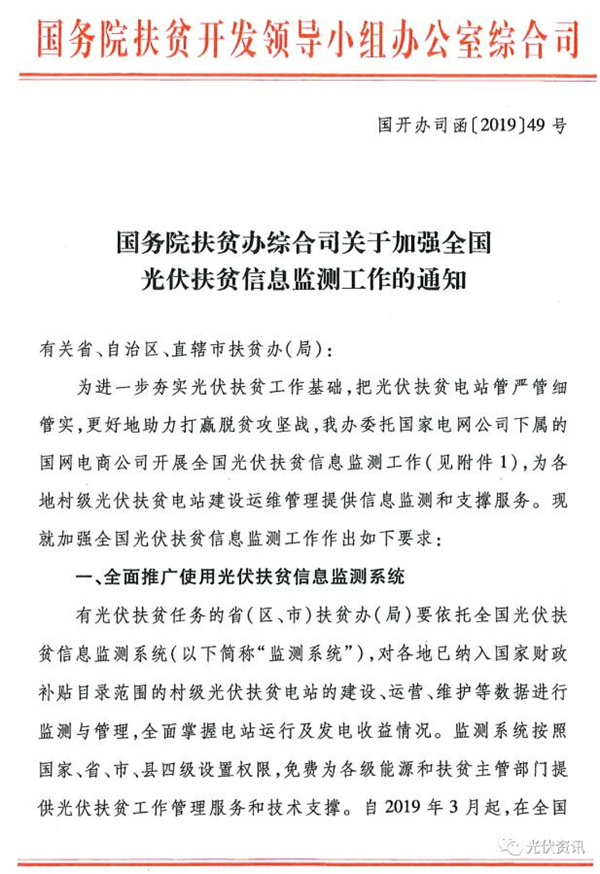 日前,国务院扶贫办综合司关于加强全国光伏扶贫信息监测工作的通知,原文如下: