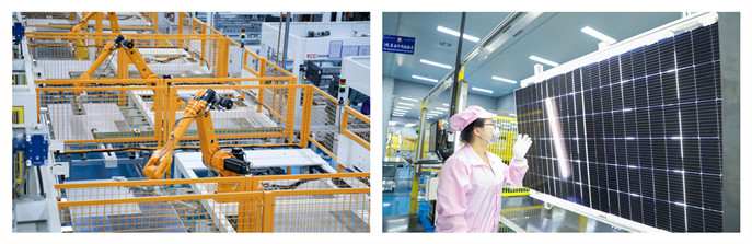 阳光能源悦阳生产基地坐落于盐城建湖,占地面积约100余亩(仍在扩建中),先进产能突破90%,产品基本覆盖市场主流需求,兼容M10/G12等多种尺寸规格,N型 TOPCon和HJT技术已可规模化量产于组件产品中。