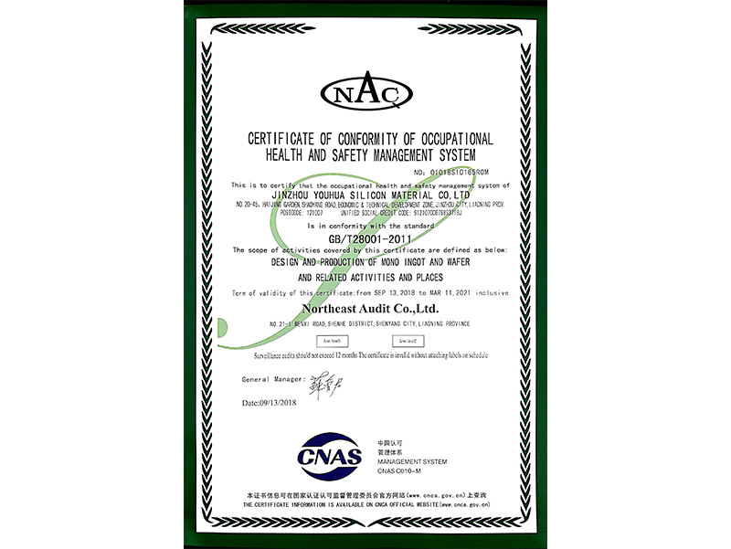 职业健康安全管理体系认证证书(中文)
