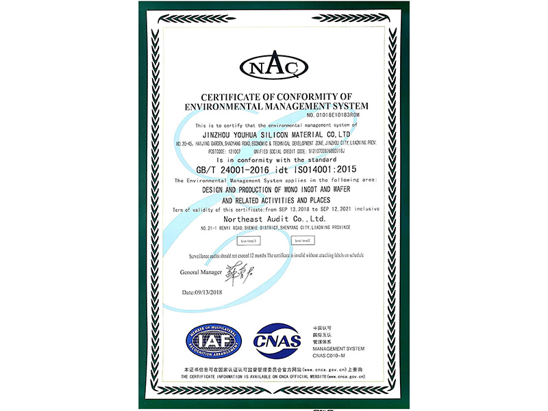 环境管理体系认证证书(英文)