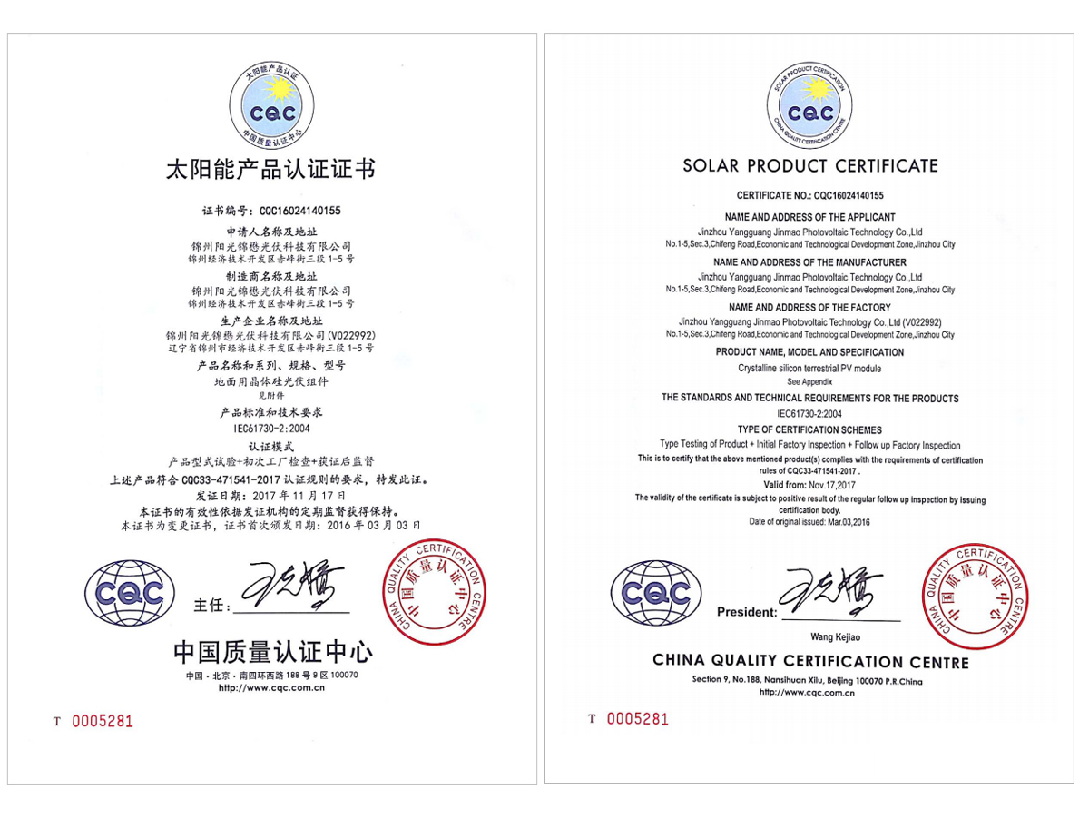 常规多晶组件CQC-1